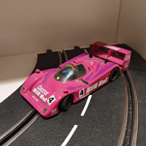 Scalextric Jaguar E Type autorata auto. Pakoputkenpää poikki. Kokoluokka 1:32 eli sopii yleisimmille autoradoille mm. Scalextric, Carrera, SCX, Ninco, Polistil, Fleischmann yms. Nouto tai postitus +9€, postitus mahdollista myös toridiilillä.