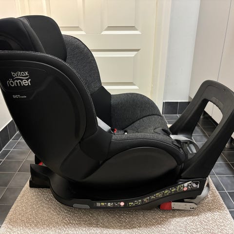 Hyväkuntoinen. Kääntyy 360 astetta, mikä tekee helpoksi lapsen laittamisen autoon istuimeen. Voi käyttää sekä selkä että kasvot menosuuntaan. Istuinta saa myös kallistettua hieman taaksepäin, jos lapsi nukkuu. Max.paino 18 kg. Jämäkkä Isofix-kiinnitys sekä tukijalka. Ohjekirja löytyy mukaan. Kolaroimaton.