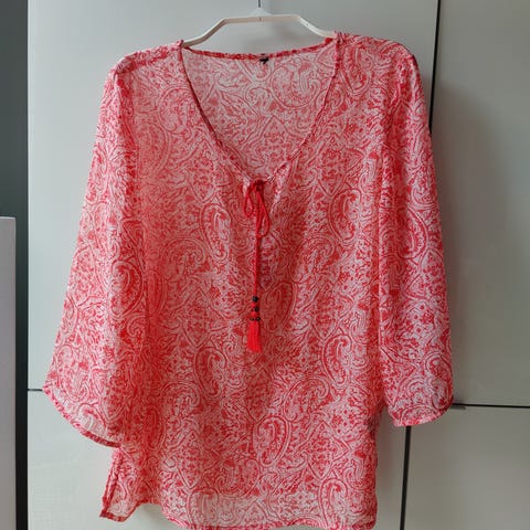 Myyn tämän kauniin sifonkipaidan, koska on minulle liian napakka. Kokomerkintä M, mutta sanoisin että pientä kokoa, vastaa ennemmin ehkä kokoa S.
