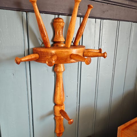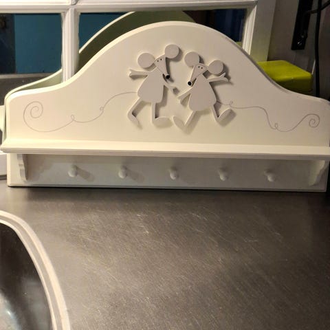 Puinen vaatekoukku, jossa hiiret.