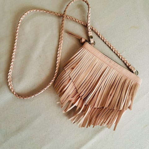 Huopaa, joka on taitettu kantokahvojen kohdalta kaksin kerroin.