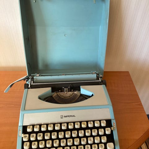 Yhdellä omistajalla ollut, aikoinaan vähän käytetty, suojakannen alla säilytetty kirjoituskone. Alkuperäispahvilaatikko sisältyy myös.