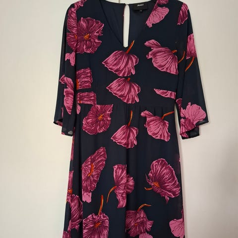 Kiva juhlava mekko. Mekossa on alushame ja takana vetoketju. Kokolapussa 44, mutta on pienempää kokoa, arvioisin M/38.