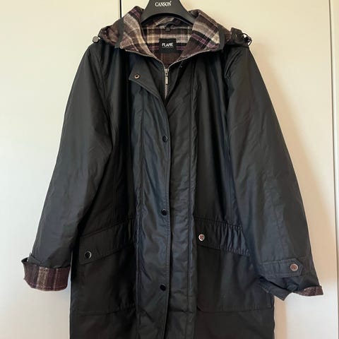 Vähän käytetty siisti ja ehjä naisten pitkä,ohut takki. Koko 44