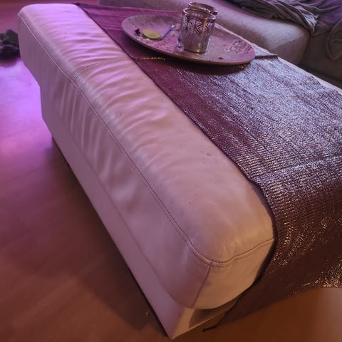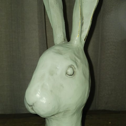 Mustanruskea nahkainen pässi, korkeus noin 33cm.