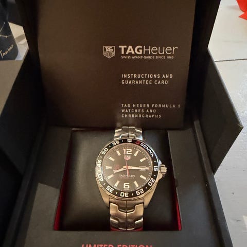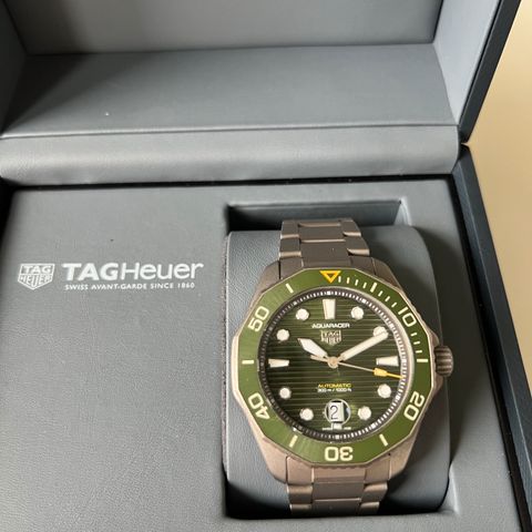TAG Heuer miesten rannekello. Ostettu 02/2025 ja käytetty n 10 kertaa. Kunto siis kuin uusi. Mukana kuitit ja takuukortti. Kellossa on vihreä kellotaulu ja se toimitetaan alkuperäisessä TAG Heuer -lokerikossa mukana käyttöohje ja takuutodistus.