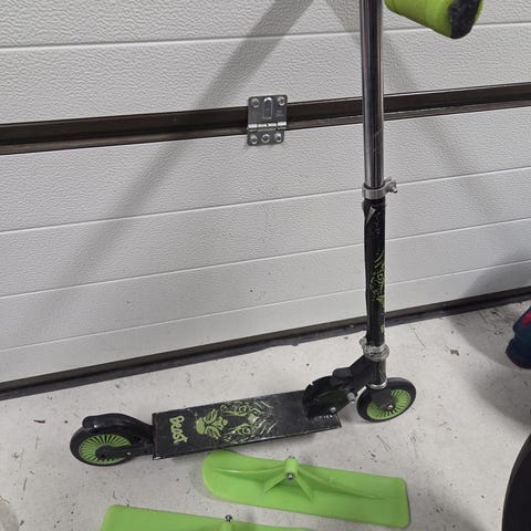 Kuvanmukaiset,hyväkuntoiset sukset potkulautaan. Hinta sisältää kaksi paria suksia.