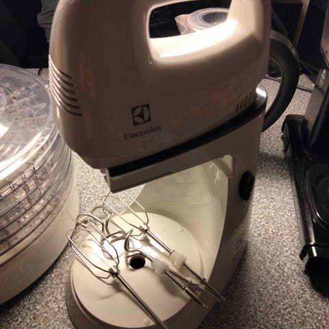 Vispilä ja jauhokauhat kuuluu hintaan.