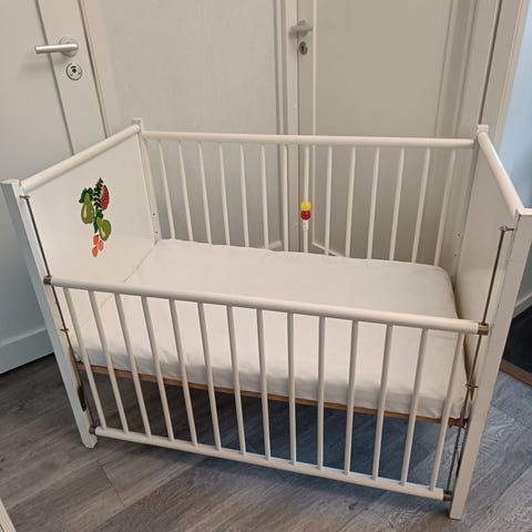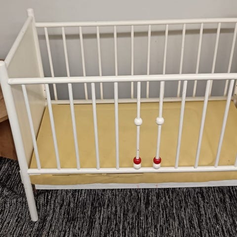 Myydään vanha 1950-1960 luvun vauvan valkoinen pinnasänky. Sänkyä mahdollisuus lapsen kasvaessa "jatkaa"/ pidentää .