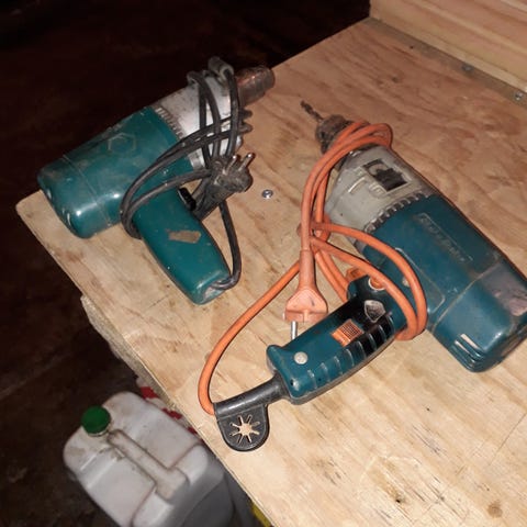 Kuvienlainen 14,4 V porakone.Kone ja laturi pelaa hienosti,mutta akut jo heikot.Ottavat virtaa kyllä vastaan.Nouto Muuruvedeltä.