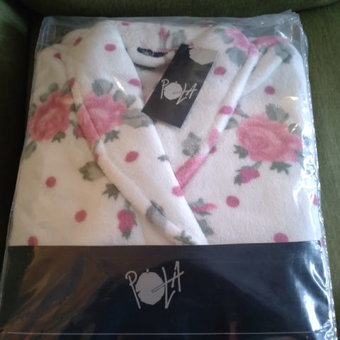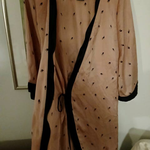 Niukasti käytetty hyvälaatuinen aamutakki. Ihana väri vaaleanpunainen ja vihreä, ruudullinen. Ohut froteevuori, taskut, vyö.