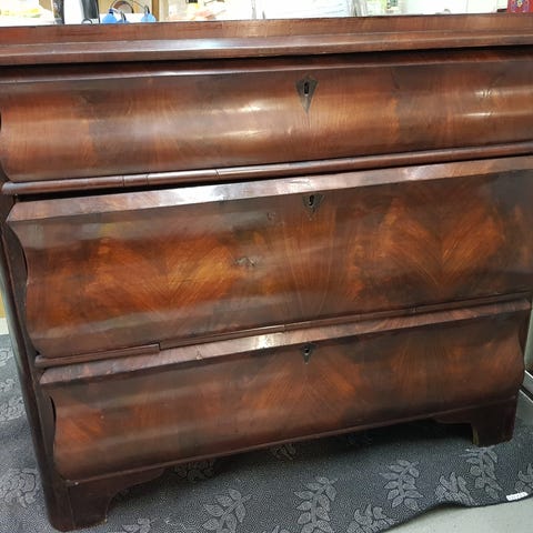 K.81x47x101cm Hyvässä kunnossa, laatikot toimii. Pieni pätkä koristelistaa puuttuu reunuksesta. Voin tuoda kuluja vastaan