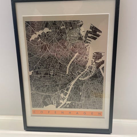 Amsterdam- kartta taulu. 22x32. Musta kehys lasilla ja paspartuulla. Pöydälle tai seinälle.