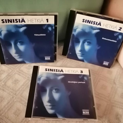 Sinisiä Unelmia 3CD setti sisältää klassista musiikkia, jossa on tunnelmallisia ja rauhoittavia sävelmiä. Setti koostuu kolmesta CD:stä nimeltään Serenadeja, Sinisiä Tunneita ja Sinisiä Unelmia. Äänitteet on julkaissut Naxos, ja ne sisältävät teoksia tunnetuilta säveltäjiltä klassisen musiikin genrestä.