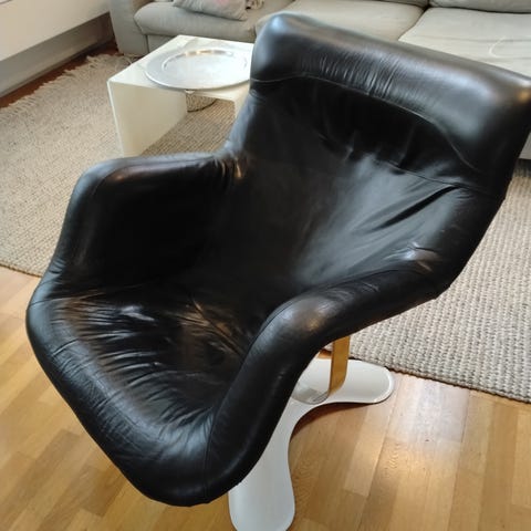 Artek Karuselli lepotuoli ja rahi, musta nahka - kuin uusi