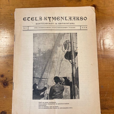 Myynnissä myös toinen kenttäjoukot lehti ja Lotta Svärd lehti. Myyntiin tulossa kirjoja 1800-1900 luvun taitteesta (luonto, maanviljelys).