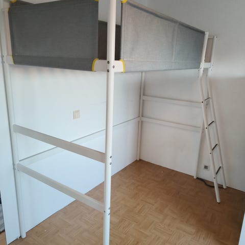 Ikean SMÅSTAD sarjan parvisänky, kirjahylly ja säilytyspenkki.