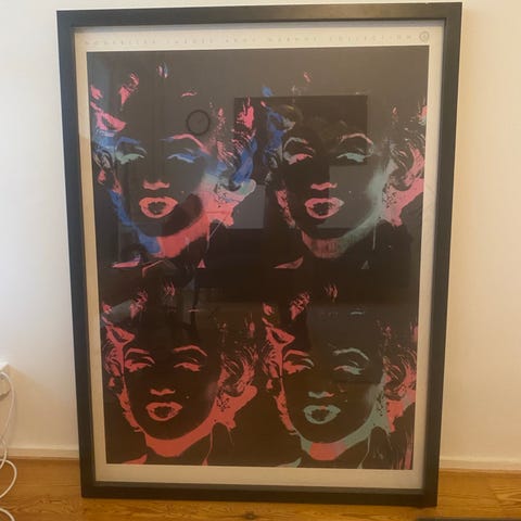 Andy Warhol: Ingrid Bergman kehystetty juliste v. 1983. 103 x 73 cm. Kehys metallia 3,5 cm. Huudettu Bukowskilta. Hinta 60 euroa. Kunto hyvä.