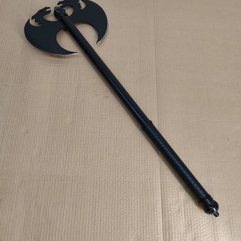 Eldenringistä tuttu Highland axe -tyylinen kirves. Sisus kovaa pahvia, päällys kipsiä, maalattu akryylimaaleilla.