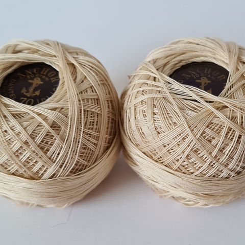 Myynnissä kuvassa olevat viisi kerää merseroitua Anchor virkkauslankaa 40,kerässä 20g,väri vaalea beige,neljä kerää täysiä ja yhdestä kerästä vähän pois.Virkkuukoukun saa mukaan.Kuvassa oleva pitsi ei kuulu kauppaan.