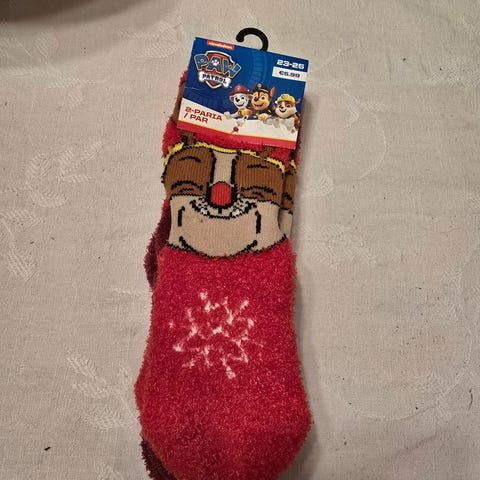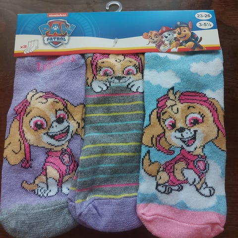 Siistikuntoinen paketti Ryhmä hau- aiheisia sukkia koossa 23/26. Pesty hajusteettomasti.