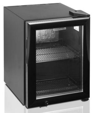 Scandomestic Jääkaappi punaisella värillä. Jääkaapissa on erillinen pakastinosa yläosassa. Sisätilat sisältävät useita hyllyjä ja ovitaskuja elintarvikkeiden säilytykseen.