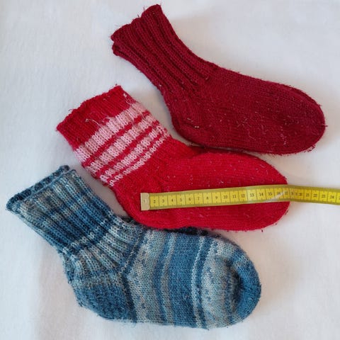 Kuvan villasukkapaketti. Kaikkia sukkia on käytetty, osaa vähemmän osaa enemmän.. 4paria villasukkia ja 1pari "porrösukkia".