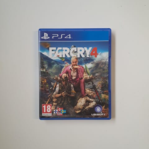 Far Cry 4 -peli Playstation 4 -konsolille. Kannessa hieman kulumaa ja levyssä ihan hentoja jälkiä. Toimii moitteettomasti. Mukaan ohjekirja.