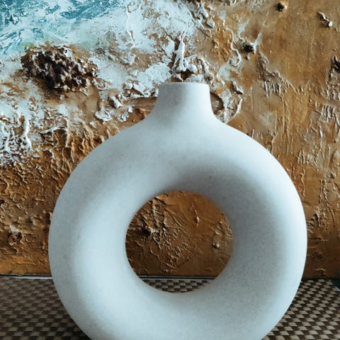 Turkoosi pyöreä maljakko, jossa on spiraalimainen kuvio. Kork. n. 12 cm.