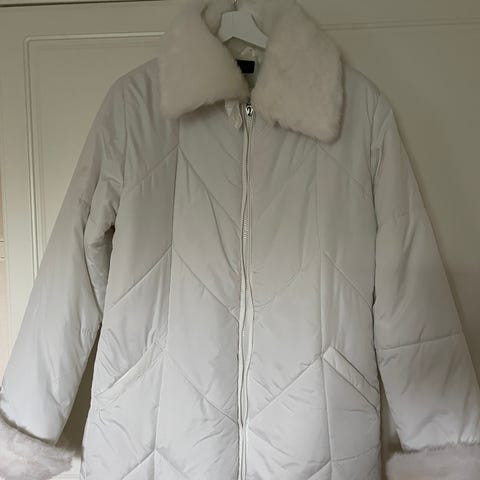 Vero Modan toppatakki koossa xs. Vyötäröllä ja helmassa kiristysnauhat, huppu irrotettavissa, taskut. Noin polvipituinen. Hyvä käytetty kunto, pesun jäljiltä osa täytteistä pikkuisen pakkautunut.