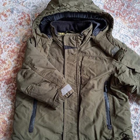Välikausi-/talvitakki/parka ulkoiluun tai kauppareissutakiksi. Ehjä ja siistissä kunnossa. Irrotettava huppu ja karvakaulus. Reilua kokoa.