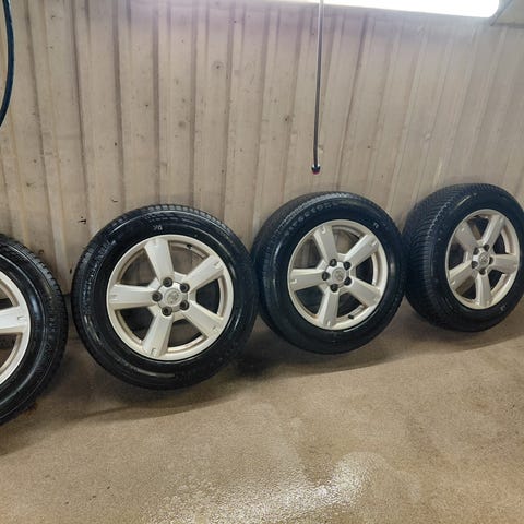 Uudet ajamattomat Bridgestonen M + S renkaat peltivanteilla kapseleineen. Uudesta Toyota Rav 4 autosta peräisin olevat.
