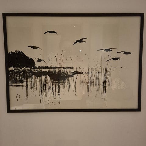 KK -82 signeeraama Taulu Lintuaihe Talvimaisema Kehystetty