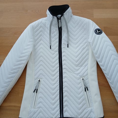 Myydään kevyttoppatakki, jossa softshell hihat. Takki on ollut vähäisellä käytöllä ja sitä ei ole pesty kertaakaan. Hupun saa kauluksen sisään, vetoketjutaskut ja kaksipuolisesta vetoketju edessä. Kapea puolipitkä malli.