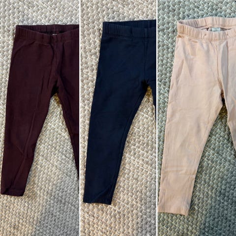 Kaikissa kokolappu 98, mutta pinkit vähän reilummat. Vas puolimmaiset lilat on ns cordura-kangasta, kestävämpää, eikä sisäpinta ole ihan samanlainen kuin toisissa vaikka pehmeä myös näissäkin on. Kokolapussa myös 122 koko vahingossa tullut, kts kuva.