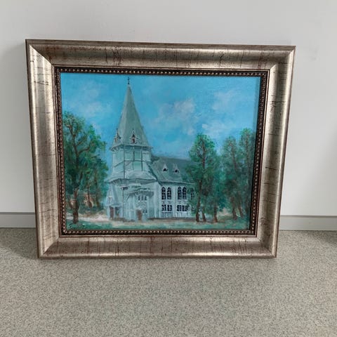 Hannu Siekkinen taulu, jossa talvimaisema. Taulun kehys on sininen ja taulu on signeerattu taiteilijan nimellä. Kuvassa näkyy kolme punertavaa rakennusta lumisessa maisemassa kuun valossa. Takapuoli musta ja varustettu ripustuslenkillä. Koko Lev 42 cm * Kork 32 cm. Taulu lahdessa, vain NOUTO. Maksu käteinen tai MobilePay