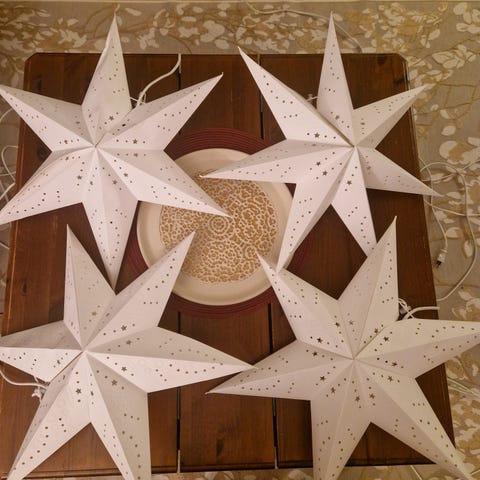 Uusi joulutähti pöydälle. Avaamaton pakkaus.