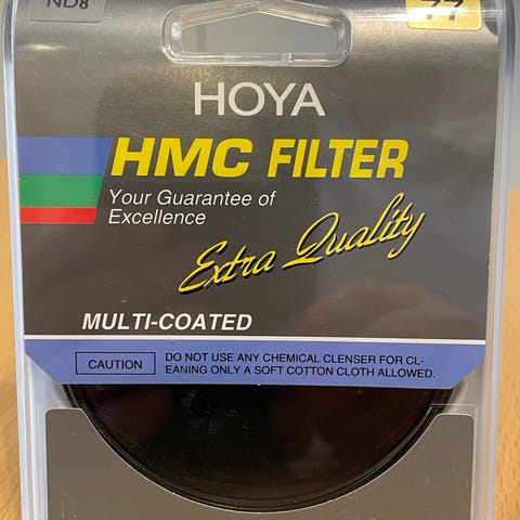 Uusi harmaasuodin avaamattomassa pakkauksessa (muovissa murtuma, suodin ehjä). Mukaan tulee myös linssinsuojus 67mm (käytetty).