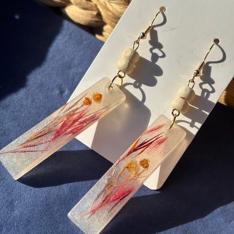 Moniväriset, isot, kevyet ja kimaltavat korvakorut. Materiaali on epoksihartsi. Metalliosat saattavat sisältää nikkeliä, joten en suosittele herkälle iholle.