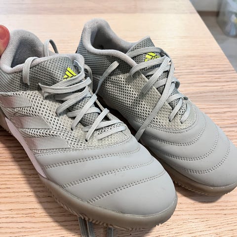 Adidas sisäjalkapallokengät, koko 39 1/3. Värit vihreä ja musta. Materiaali synteettinen. Soveltuvat sisäjalkapalloon ja muihin sisätilojen urheilulajeihin.