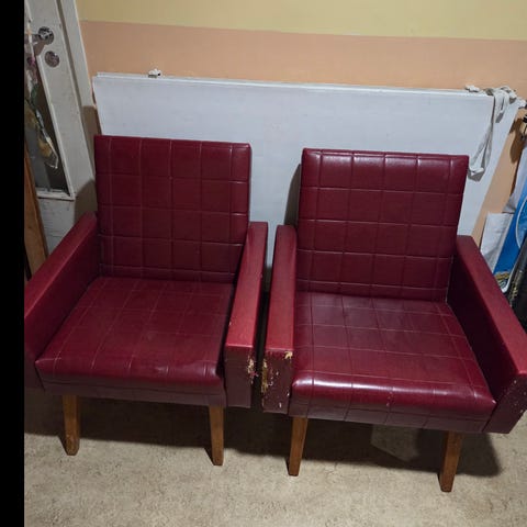 Vanha nojatuoli, jossa mäntypuiset käsinojat ja sorvatut jalat.
