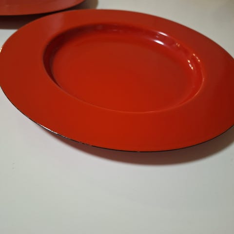 Finel Emma emalilautaset 3kpl setti: punainen, sininen ja keltainen. Väriä sisustukseen koristelautasilla tai vaikka kattaukseen katelautasena. Sopii myös tukikohdaksi ovenpieleen pikkuesineille. Koko 27cm. Myydän kuvien osoittamassa kunnossa.