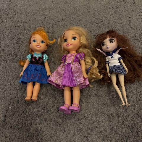 Ihmeperhe-nuket 4 kpl: Herra Ihme, Rajaton, Eira Kuosi ja Jaska. Muuten hyvässä kunnossa, mutta hiukset vähän sotkuiset ja silmälasien sanka katkennut. Herra ihmeen ja rajattoman maskit eivät ole koskaan pysyneet kasvoilla.