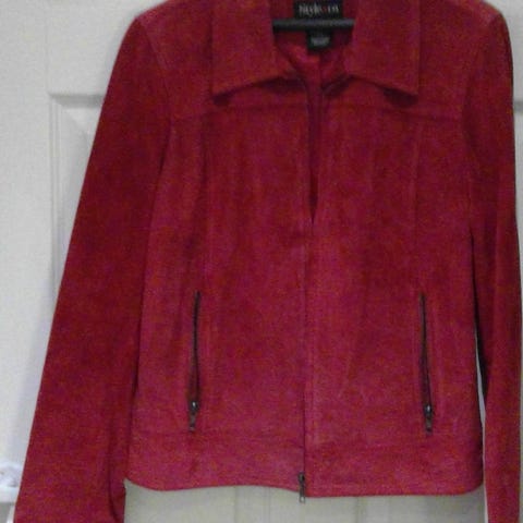 Farkkumallinen punainen mokkanahkatakki, koko xl.