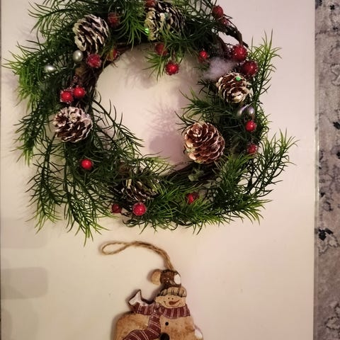 Koristekranssi poro/lumihiutale. Halkaisija noin 32cm.