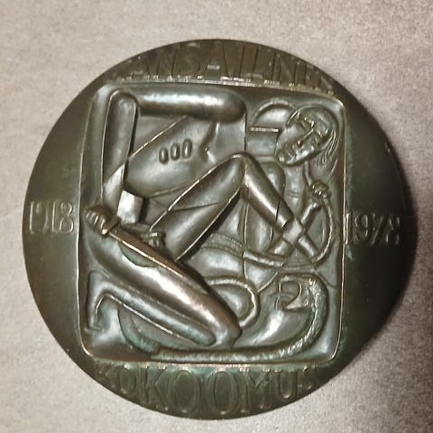 2. Kuvanveistäjä Kauko Räsäsen suunnittelema mitali. Mitalissa on tekstit "KANSALLINEN", "KOKOOMUS" sekä vuodet "1918" ja "1978". Mitali on tehty Kansallisen Kokoomuksen 60-vuotisjuhlan kunniaksi.