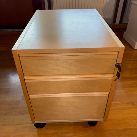 Rulokaappi, iskusta ostettu. avainta ei ole enää tallessa ja lyijykynän jälkiä ovessa mutta saa varmastikkin pois!