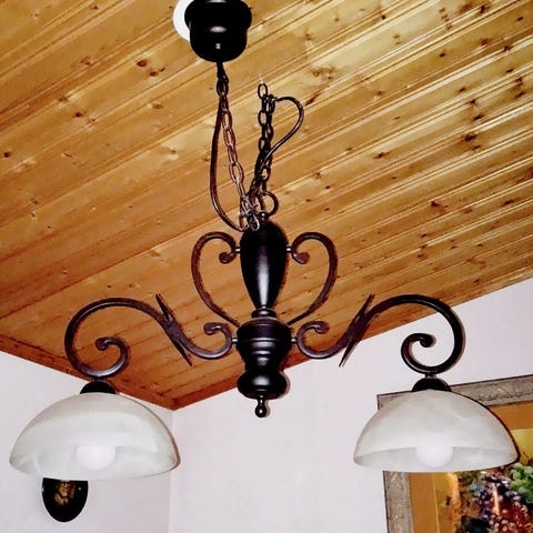 Hapsullinen valkoinen valaisin. Halkasija n. 36 cm.