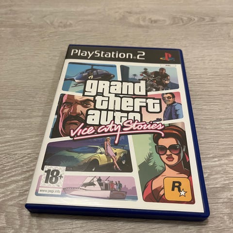 Rockstar Games Grand Theft Auto Vice City PS2 peli. Peli sijoittuu 1980-luvun Vice Cityyn.
