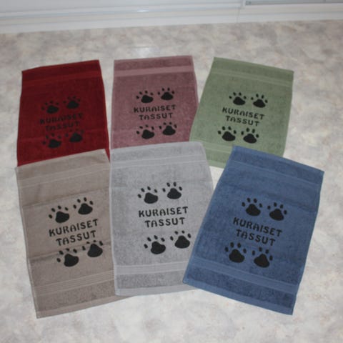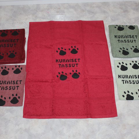 Uusi 50x70cm pyyhe, käsinpainettu tassu kuvat ja tassupyyhe teksti.